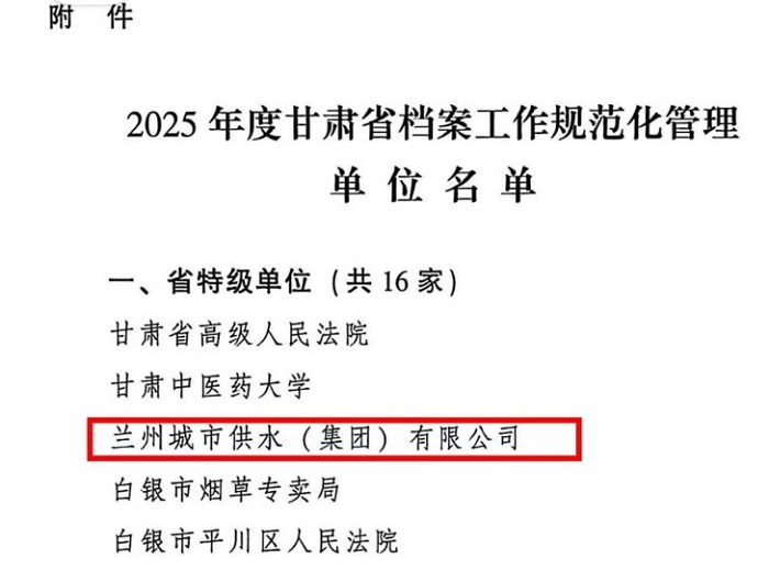集团公司被认定为“甘肃省档案工作 规范化管理省特级单位”